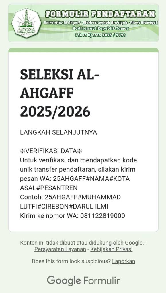 8. Nomor anda akan dimasukkan grup WA SELEKSI Al-AHGAFF 25 dan diarahkan untuk mengisi Formulir Kartu & Pilihan Jurusan